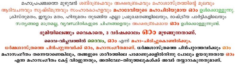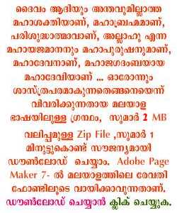 | Portions from the Divine Book 2009 in Malayalam language (Concise MahaaVedam) |